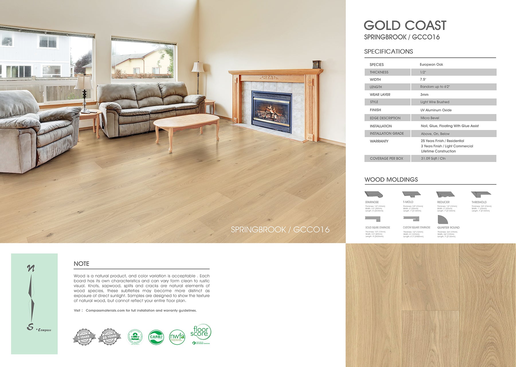 Gold Coast - Springbrook GCCO16 - 7.5" Wide Oak Engineered Hardwood Flooring 1/2" Thick, 3mm Wear Layer